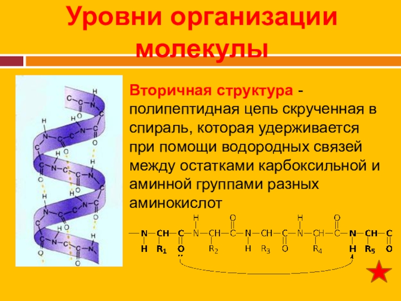 Вторичная структура - полипептидная цепь скрученная в спираль, которая