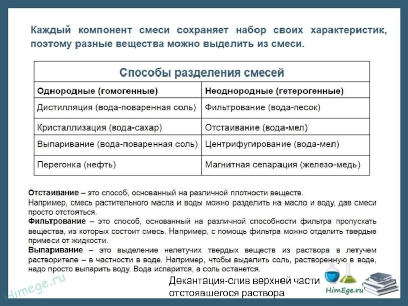 Слайд 3Декантация-слив верхней части отстоявшегося раствора