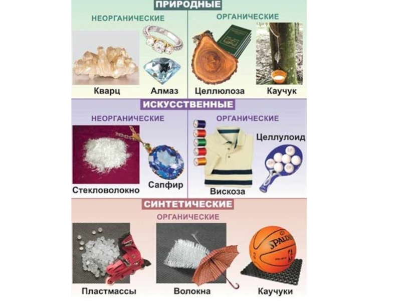 Природные органические ВМС – целлюлоза, белки, крахмал, натуральный каучук;