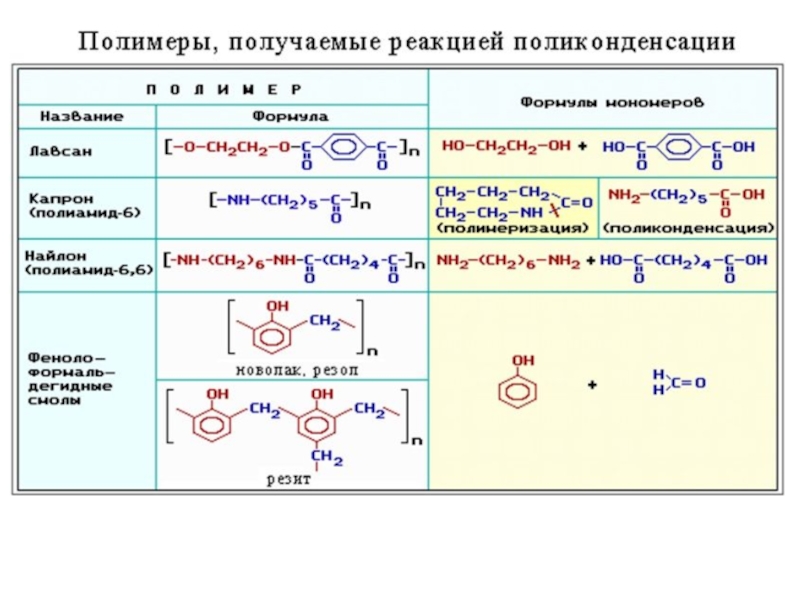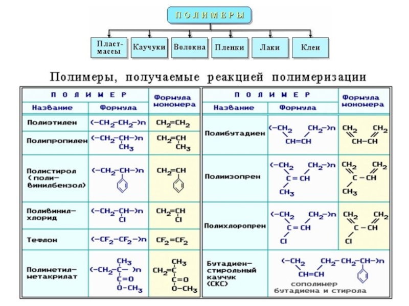Синтез полимеров из мономеров основан на реакциях двух типов: полимеризации и поликонденсации.