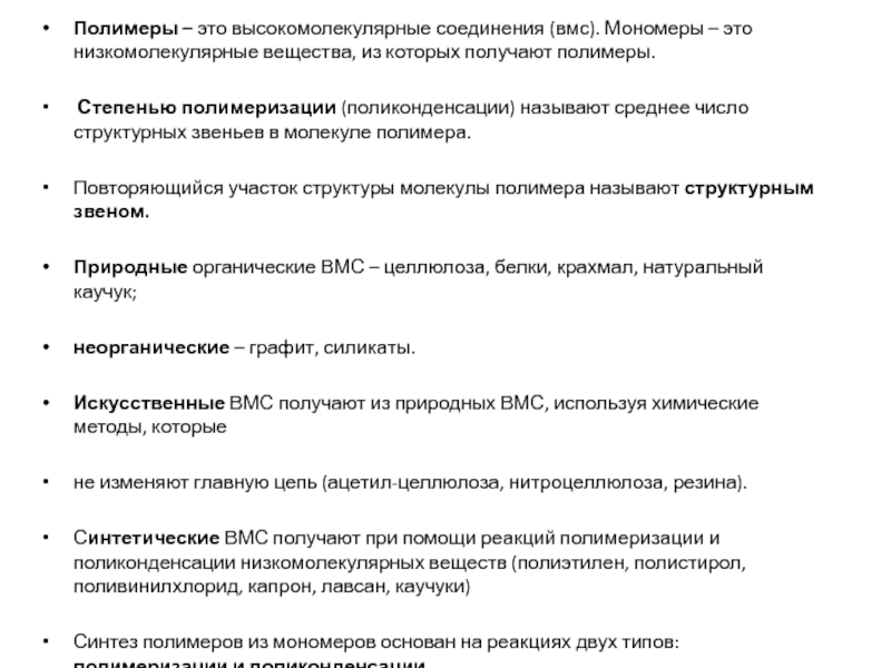 Слайд 12Полимеры – это высокомолекулярные соединения (вмс). Мономеры – это низкомолекулярные вещества,