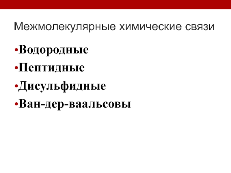 Межмолекулярные химические связиВодородные ПептидныеДисульфидныеВан-дер-ваальсовы