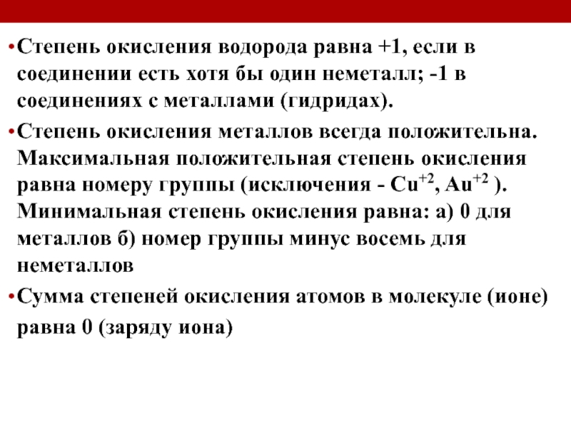 Слайд 16Степень окисления водорода равна +1, если в соединении есть хотя бы
