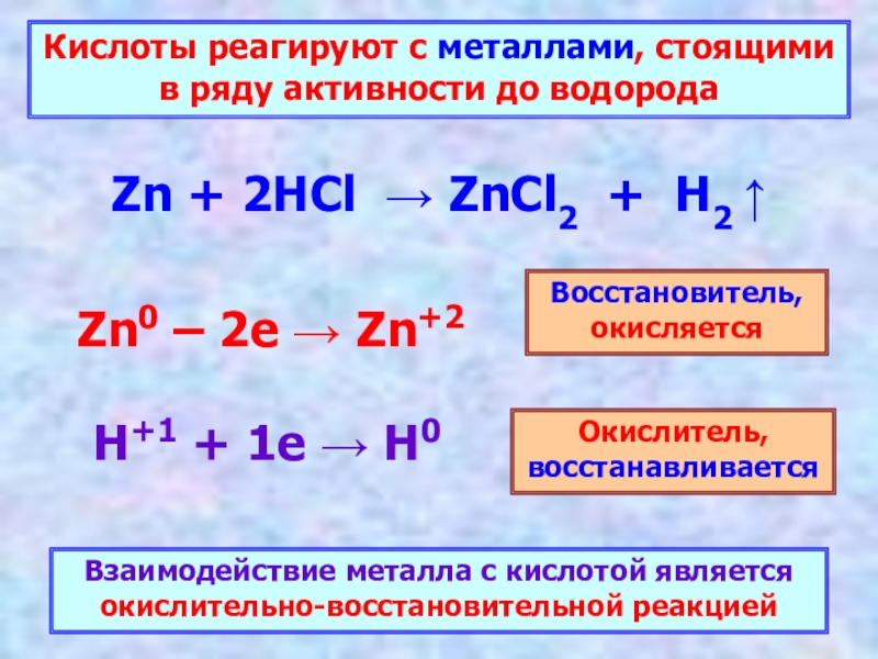 Взаимодействие металла с кислотой является окислительно-восстановительной реакцией