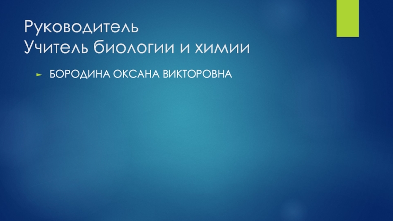 Руководитель Учитель биологии и химии БОРОДИНА ОКСАНА ВИКТОРОВНА