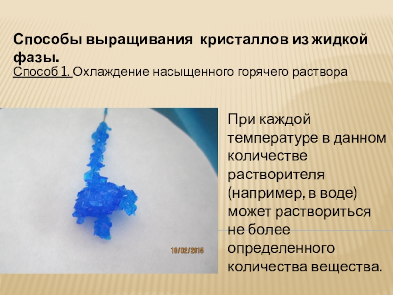 При каждой температуре в данном количестве растворителя (например, в воде) может раствориться не более определенного количества вещества.