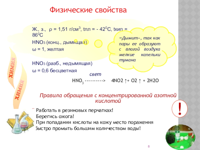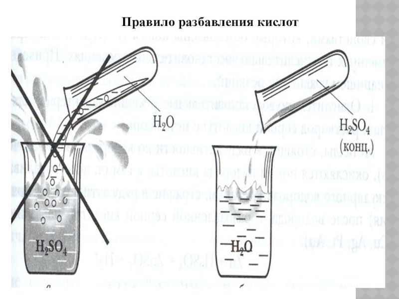 При попадании кислоты на кожу место поражения быстро промыть большим количеством воды!