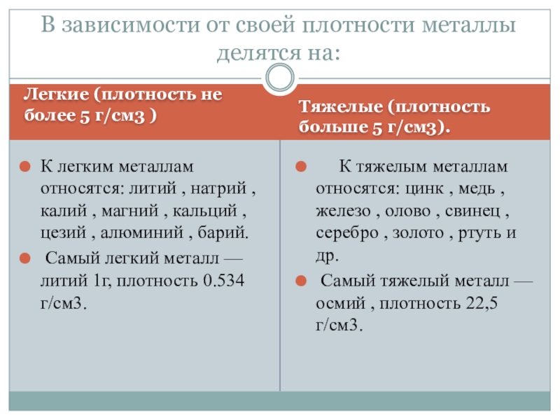 Самый тяжелый металл — осмий , плотность 22,5 г/см3.