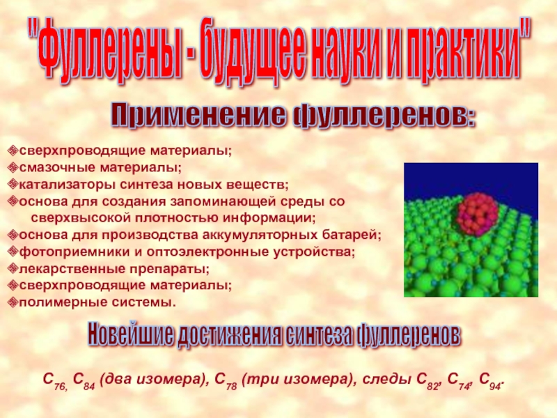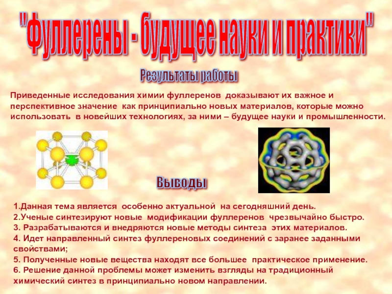 4. Идет направленный синтез фуллереновых соединений с заранее заданными свойствами;