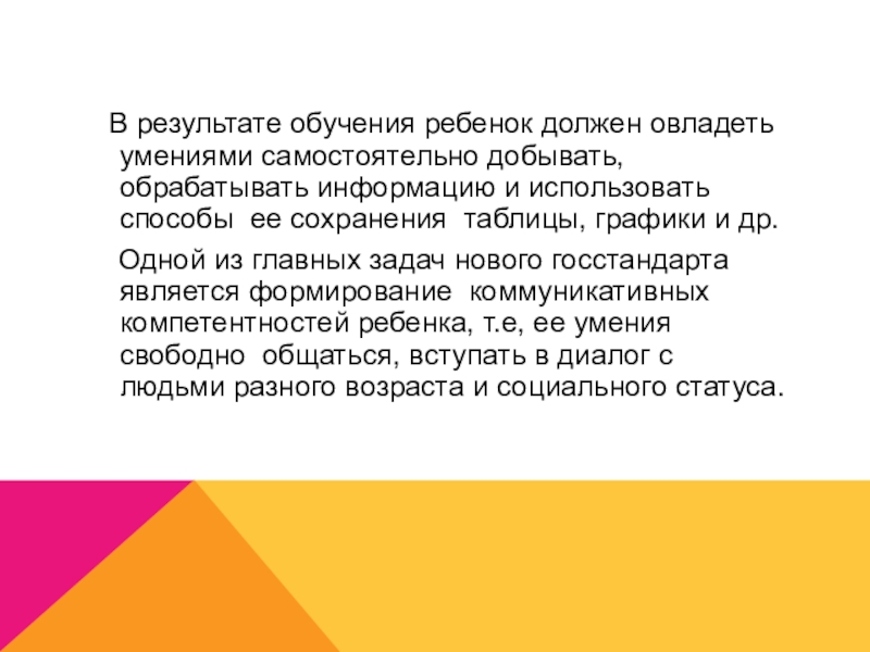 Одной из главных задач нового госстандарта является формирование коммуникативных компетентностей ребенка, т.е, ее умения свободно общаться, вступать в диалог с людьми разного возраста и социального статуса.