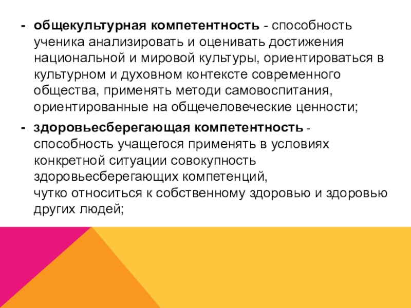 общекультурная компетентность - способность ученика анализировать и оценивать достижения национальной и