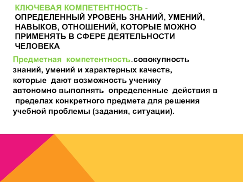 Слайд 13КЛЮЧЕВАЯ КОМПЕТЕНТНОСТЬ - ОПРЕДЕЛЕННЫЙ УРОВЕНЬ ЗНАНИЙ, УМЕНИЙ, НАВЫКОВ, ОТНОШЕНИЙ, КОТОРЫЕ МОЖНО