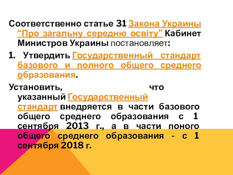 Соответственно статье 31 Закона Украины “Про загальну середню освіту” Кабинет Министров Украины постановляет: