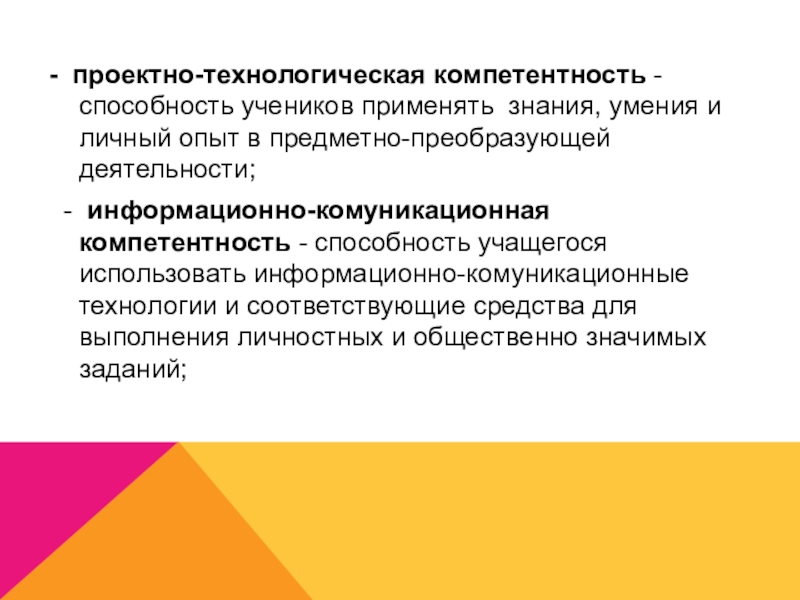 - проектно-технологическая компетентность - способность учеников применять знания, умения и
