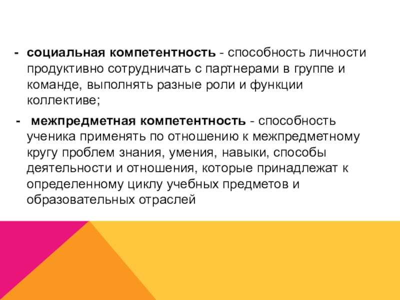 социальная компетентность - способность личности продуктивно сотрудничать с партнерами в группе