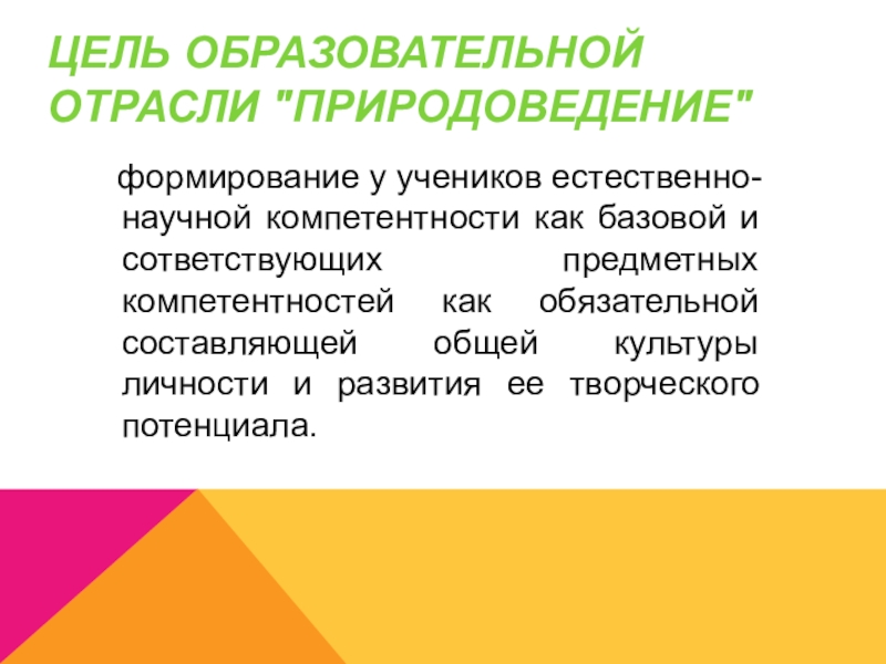 Слайд 8ЦЕЛЬ ОБРАЗОВАТЕЛЬНОЙ ОТРАСЛИ "ПРИРОДОВЕДЕНИЕ"