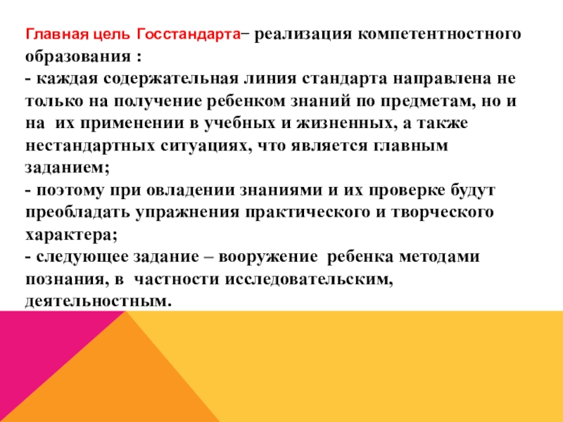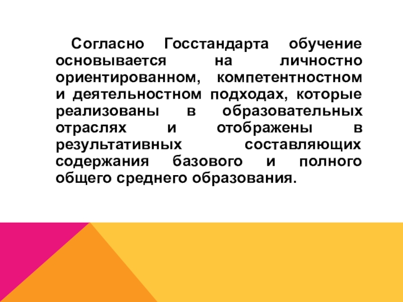 Согласно Госстандарта обучение основывается на личностно ориентированном, компетентностном и деятельностном