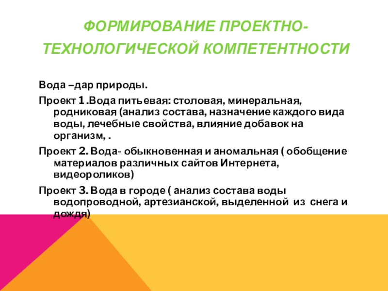 Проект 3. Вода в городе ( анализ состава воды водопроводной, артезианской, выделенной из снега и дождя)