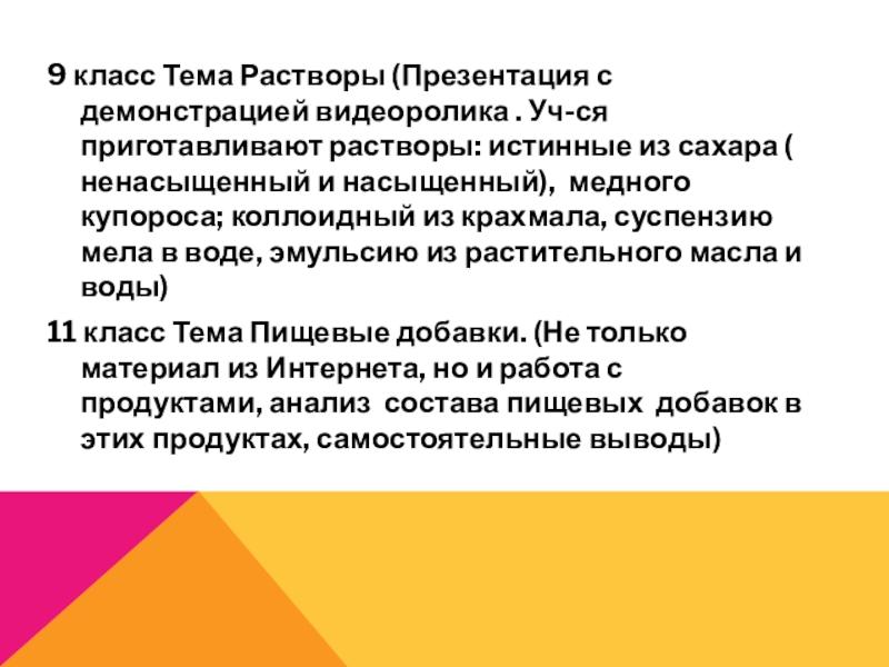 9 класс Тема Растворы (Презентация с демонстрацией видеоролика . Уч-ся приготавливают