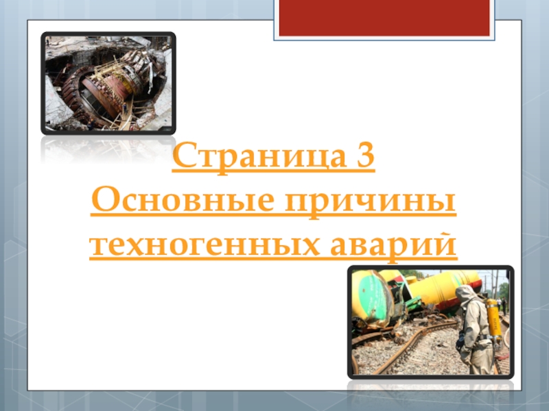 Слайд 16Страница 3 Основные причины техногенных аварий