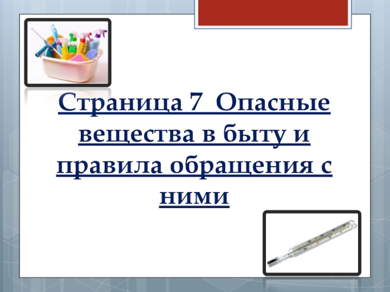 Слайд 26Страница 7 Опасные вещества в быту и правила обращения с ними