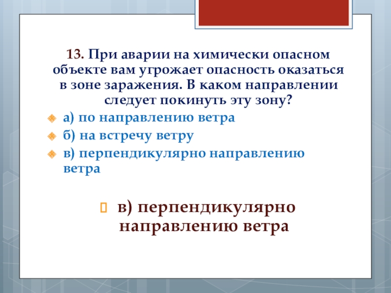 Слайд 5513. При аварии на химически опасном объекте вам угрожает опасность оказаться