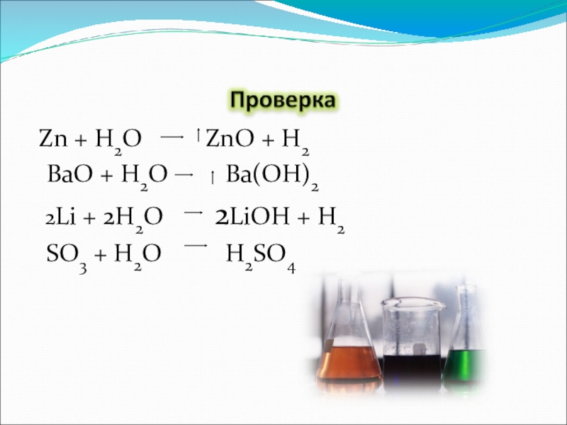 Слайд 18 Zn + H2O ZnO + H2
