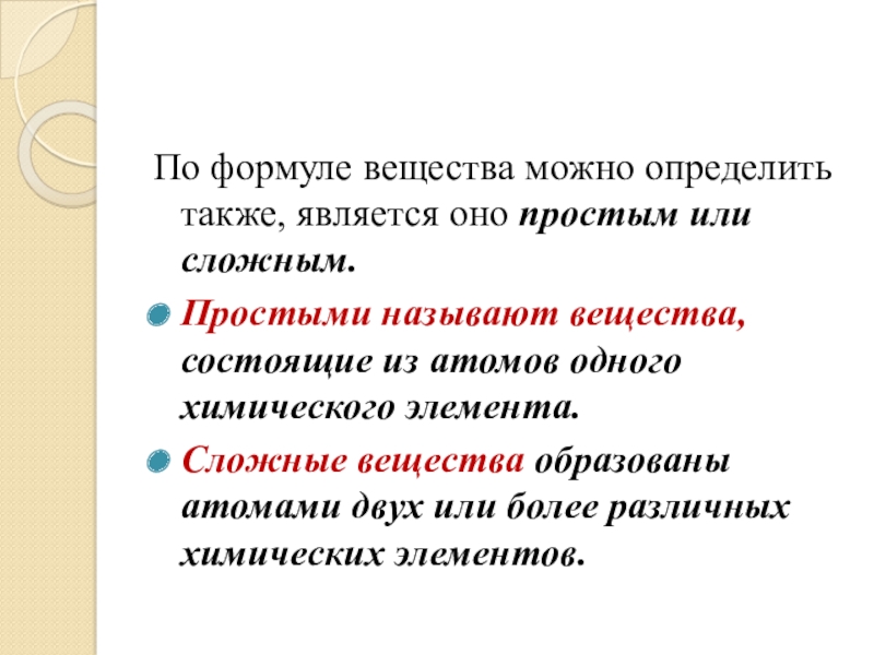По формуле вещества можно определить также, является оно простым или сложным.Простыми называют вещества, состоящие из атомов одного