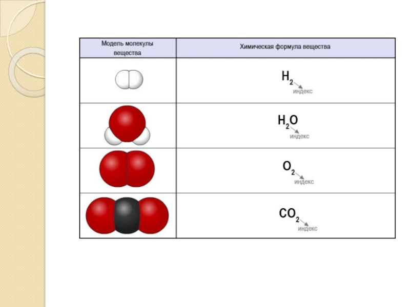 В состав веществ входят атомы нескольких химических элементов. С помощью символов и индексов составляется формула вещества. Химическая