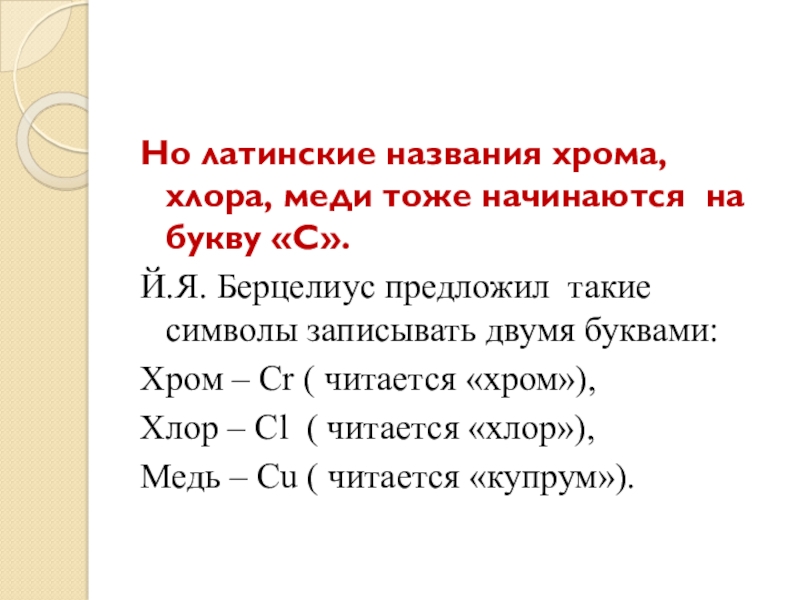 Слайд 6Но латинские названия хрома, хлора, меди тоже начинаются на букву «С».