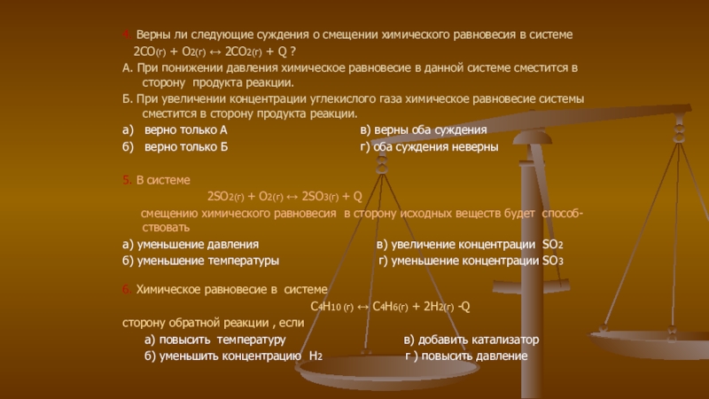 Слайд 224. Верны ли следующие суждения о смещении химического равновесия в системе