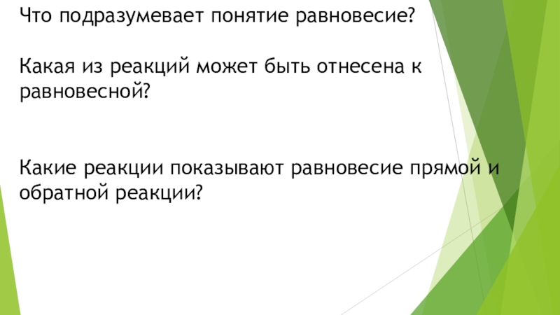 Какие реакции показывают равновесие прямой и обратной реакции?