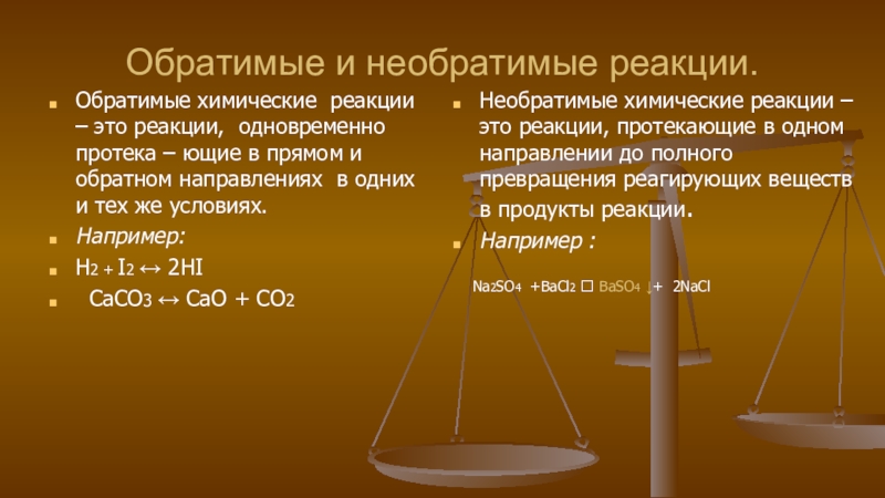 Закрепить понятия «обратимость» и «необратимость» химических реакций; обобщить и углубить