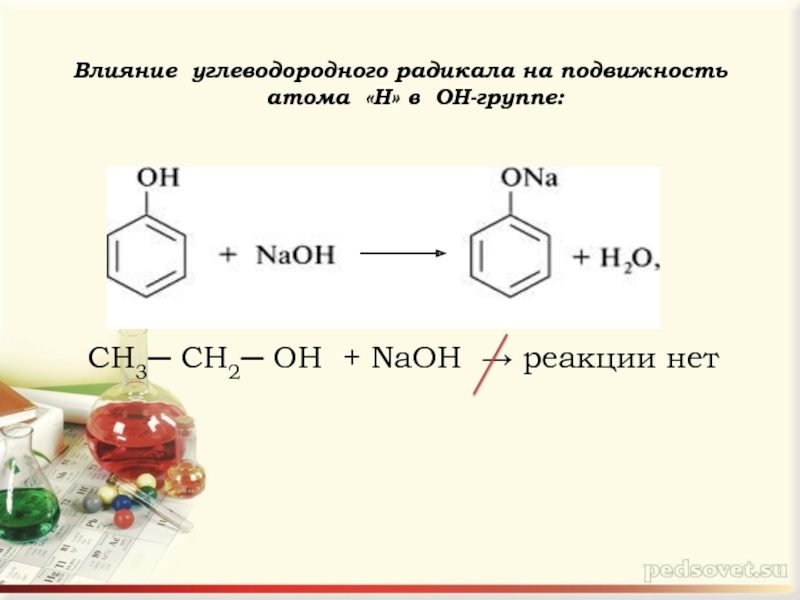 Влияние ОН-группы на подвижность «Н» в цикле: