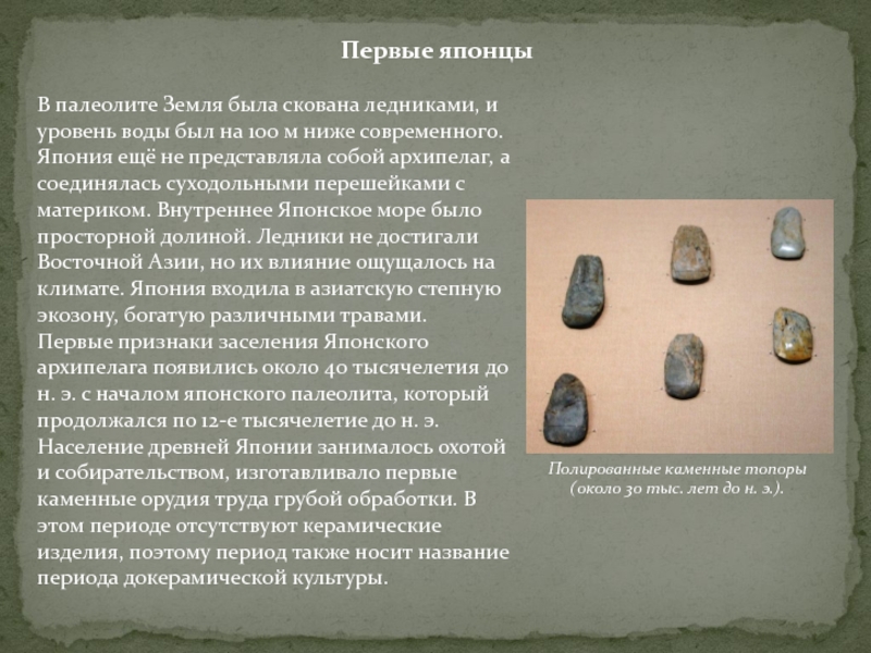 Полированные каменные топоры (около 30 тыс. лет до н. э.).