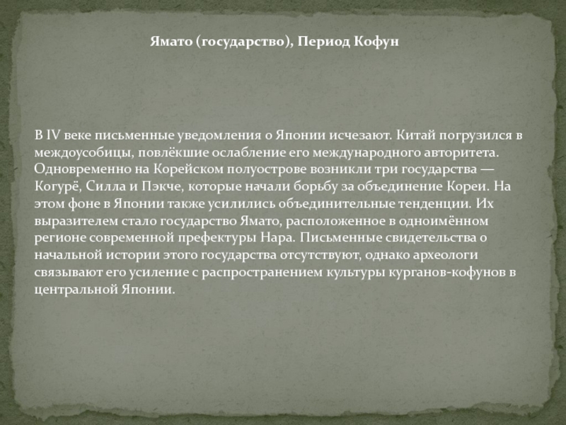 Наибольшее количество подобных могил находилось в Ямато и Кавати, на территории современных префектур Нара и Осака, что говорит о возможном союзе знати этих двух регионов.