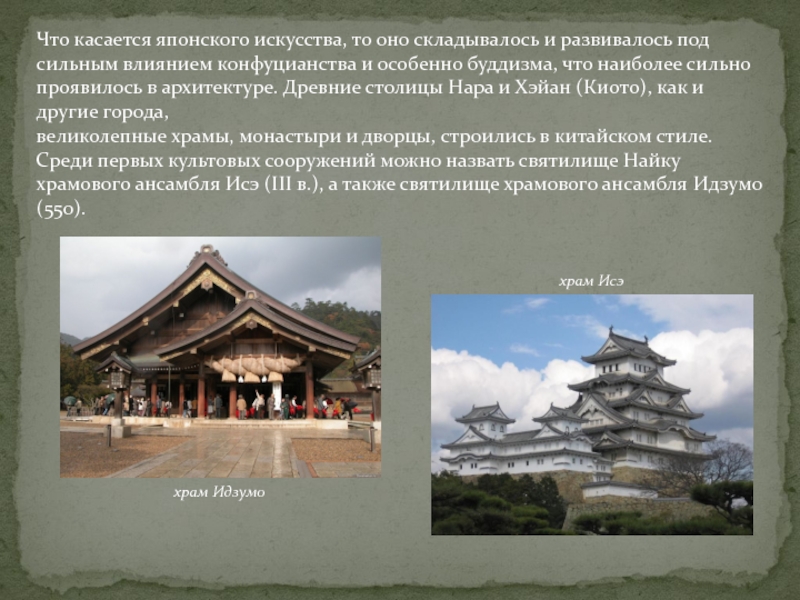 По мере развития земледелия важное место начинают занимать связанные с ним ритуалы и обряды. Один из них был весенним и означал испрашивание урожайного года, а другой — осенним и означал пробу нового хлеба. Эти обряды сохранились до наших дней, хотя по форме они, конечно, изменились: если первоначально они проводились на специально выбранной горе или в роще, где, как предполагалось, находилось само божество, то позднее для их проведения строятся храмы-святилища.