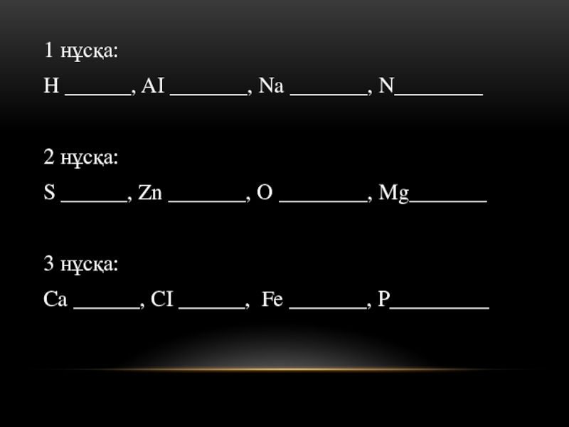 1 нұсқа:       H ______, AІ _______, Na _______, N________ 2 нұсқа: