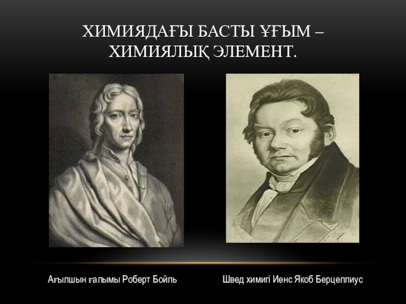 Химиядағы басты ұғым – химиялық элемент. Ағылшын ғалымы Роберт БойльШвед химигі Иенс Якоб Берцеллиус