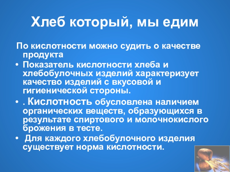 кислотности хлеба и хлебобулочных изделий характеризует качество изделий с вкусовой и гигиенической стороны.