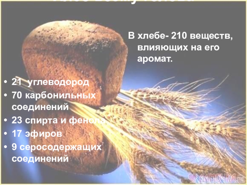 В хлебе- 210 веществ, влияющих на его аромат.