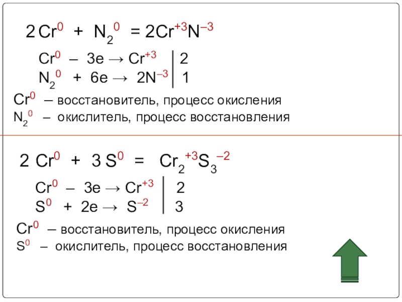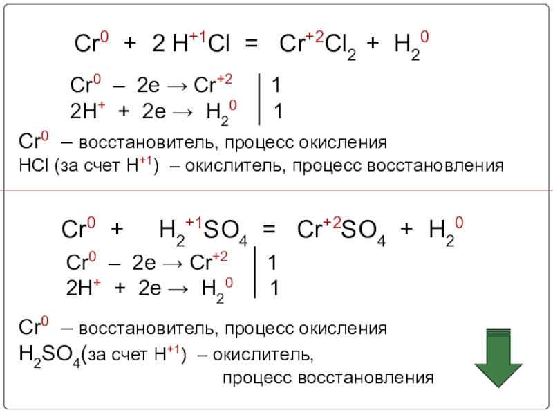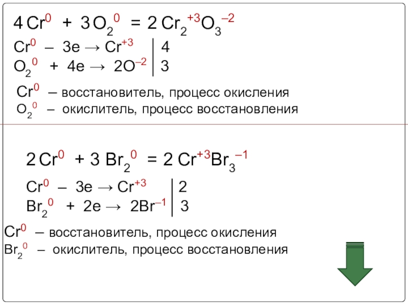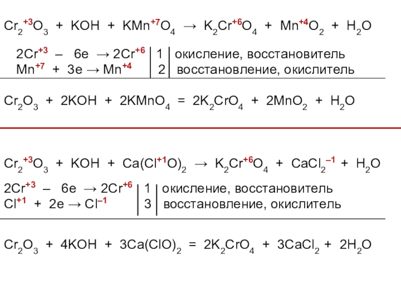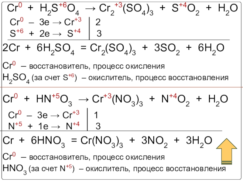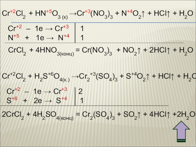 Cr+3 + 1e → Cr+2 2 восстановление, окислитель