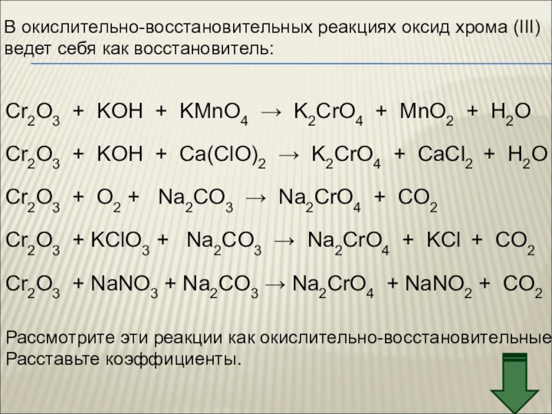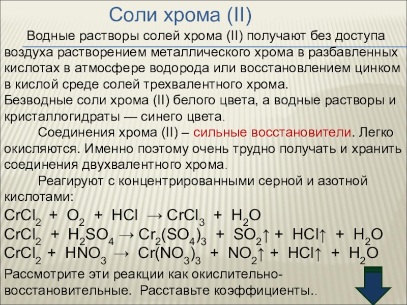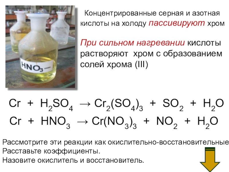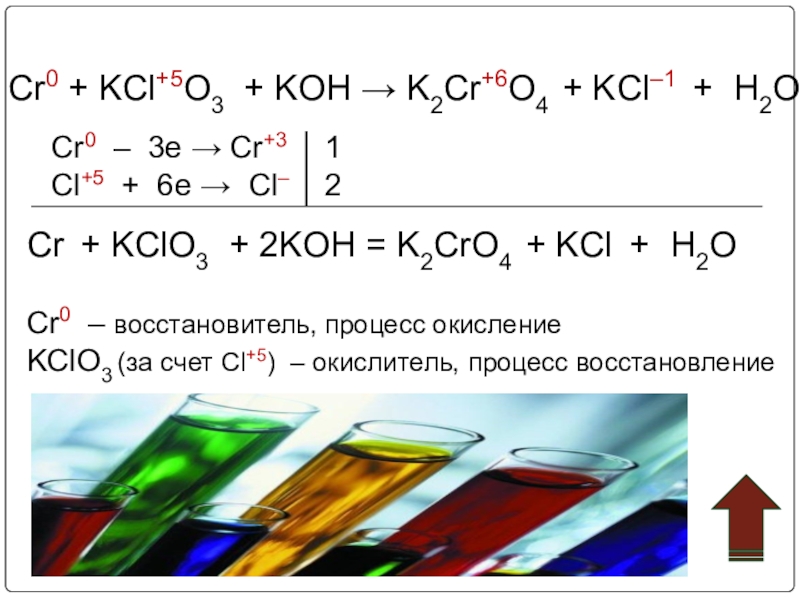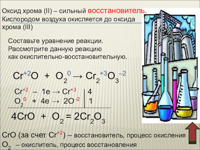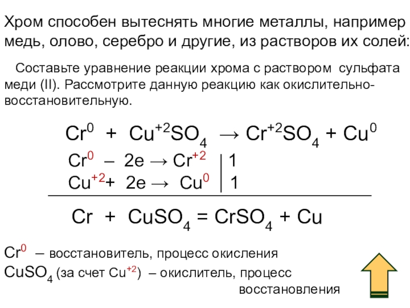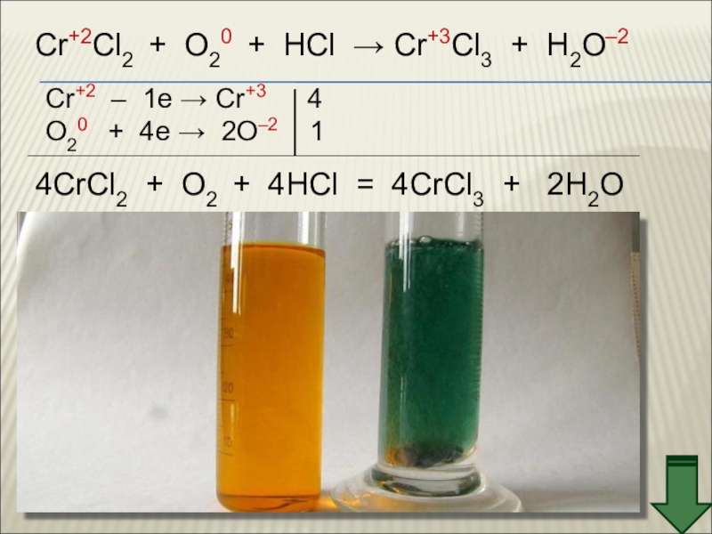 Cr+3 + 1e → Cr+2 2 восстановление, окислитель