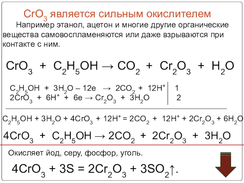 CrO3 + C2H5OH → CO2 + Cr2O3 + H2O