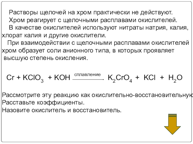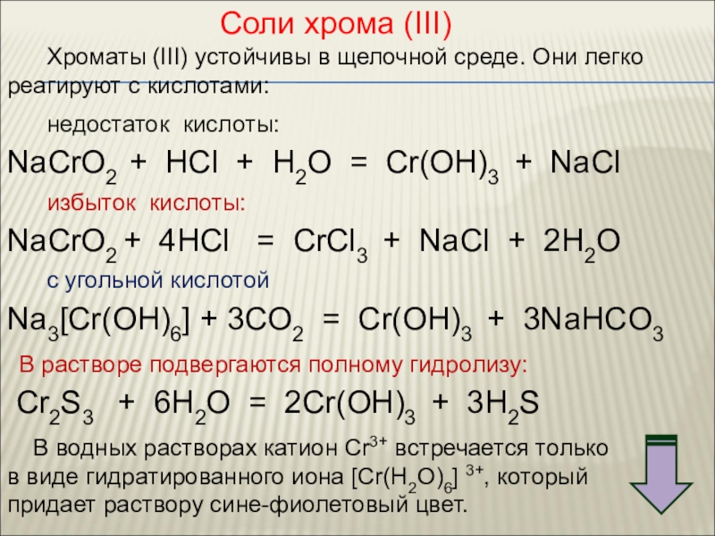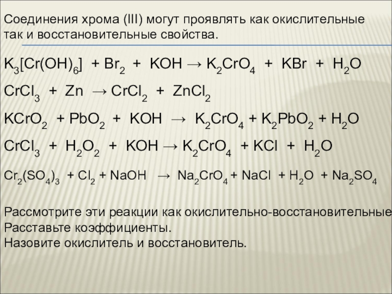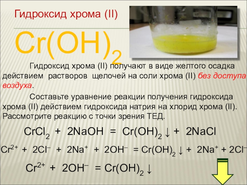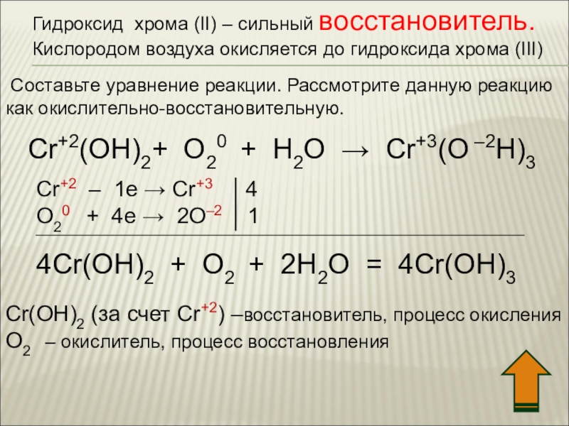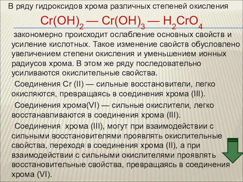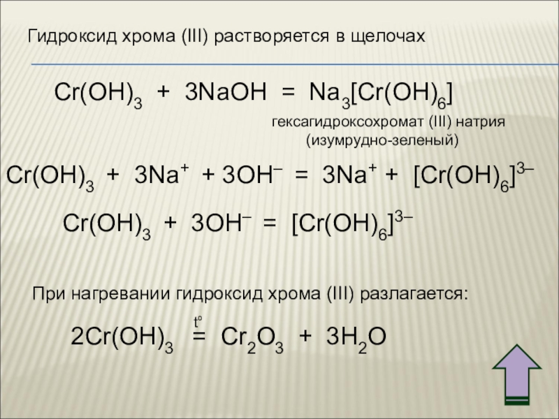 Гидроксид Cr(OH)2 Cr(OH)3 H2CrO4