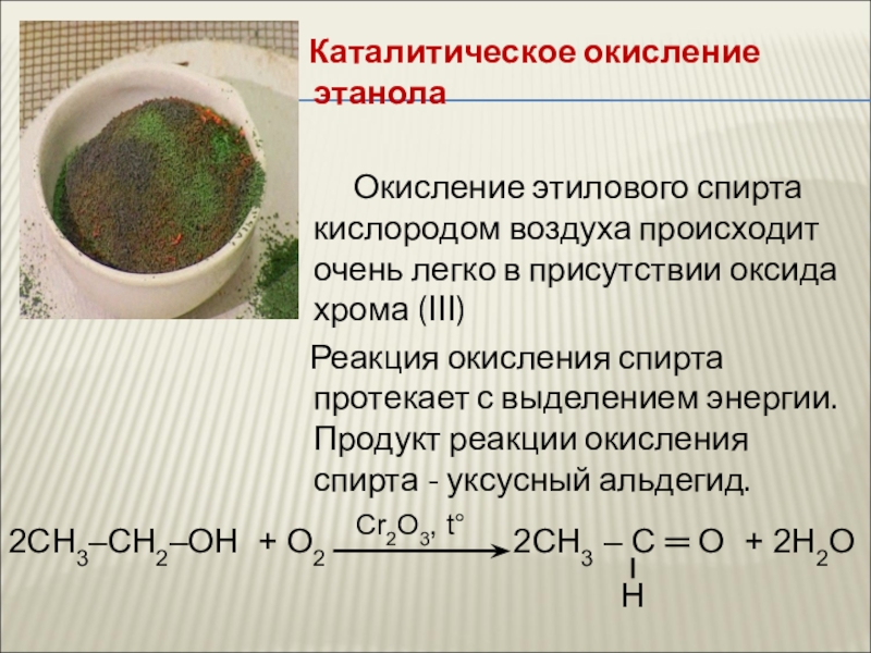 4CrO3 + C2H5OH → 2CO2 + 2Cr2O3 + 3H2O