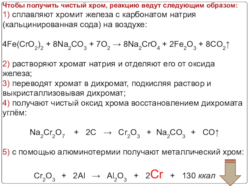 FeO· Cr2O3 + 4C → Fe + 2Cr + 4CO↑