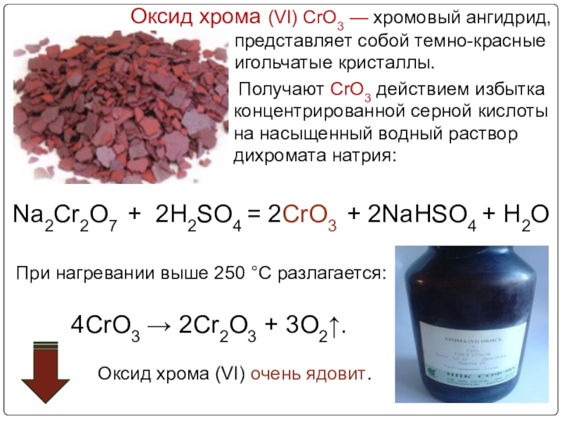 Оксид хрома (VI) CrO3 — хромовый ангидрид,