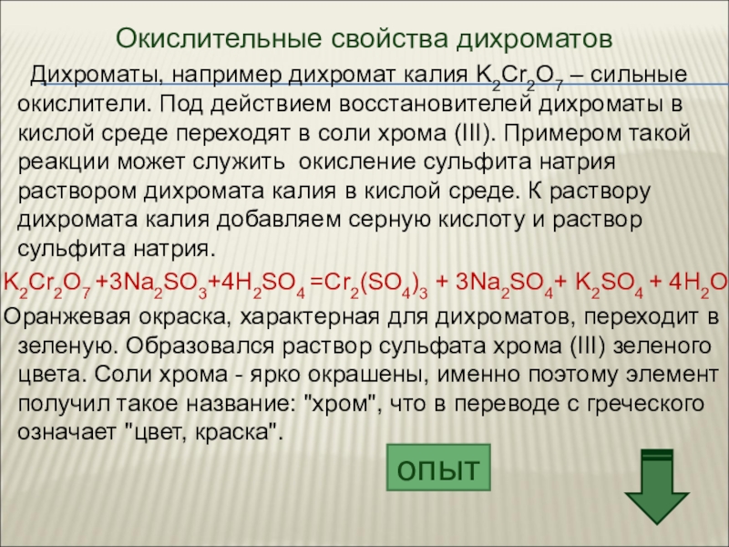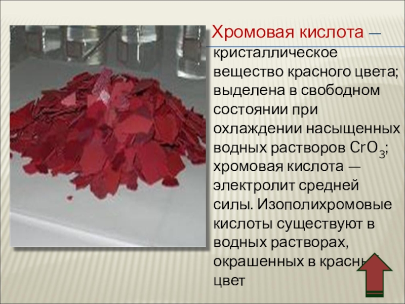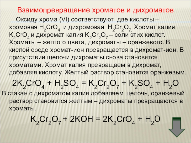 2Н2CrO4 ↔ Н2Cr2O7 + Н2O