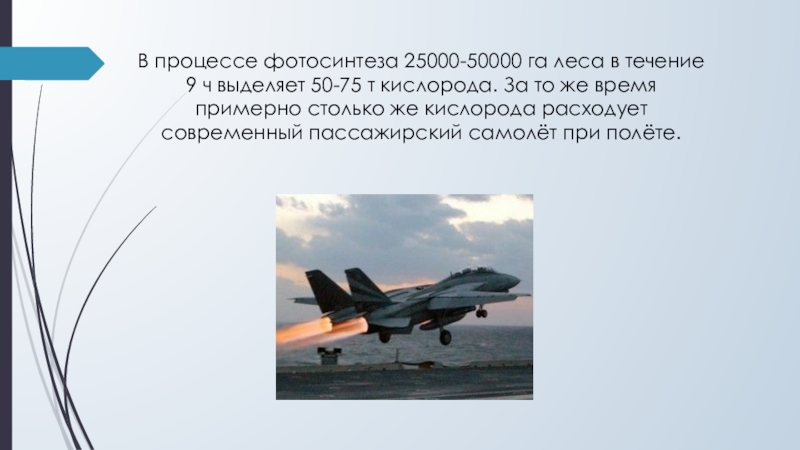 Слайд 17В процессе фотосинтеза 25000-50000 га леса в течение 9 ч выделяет